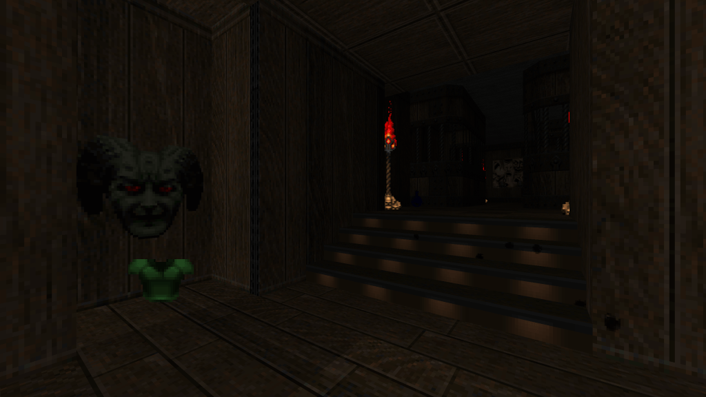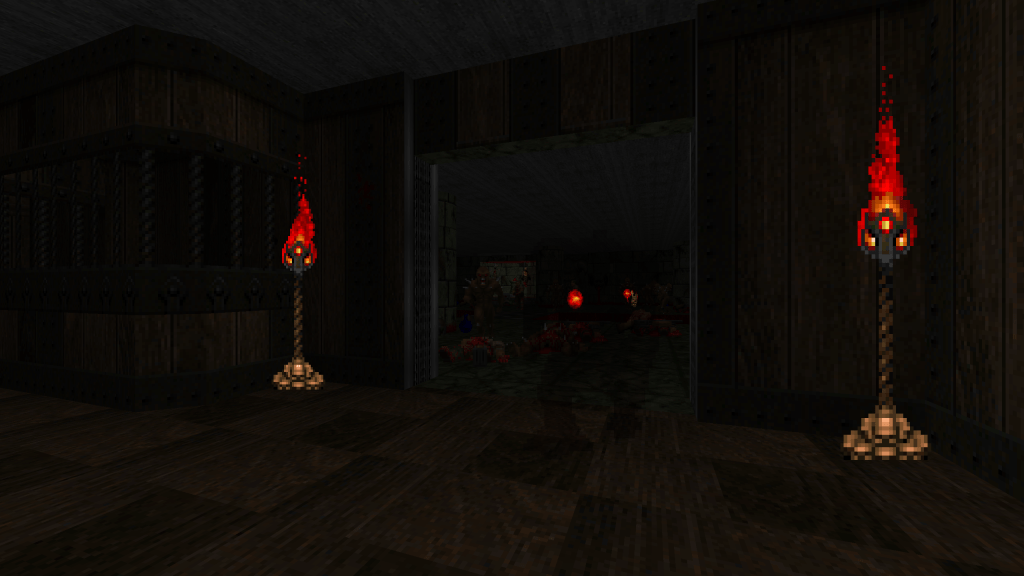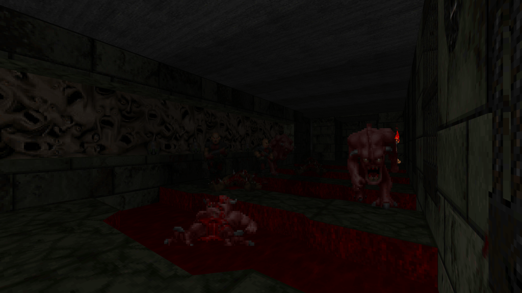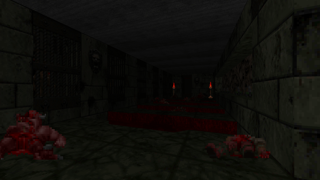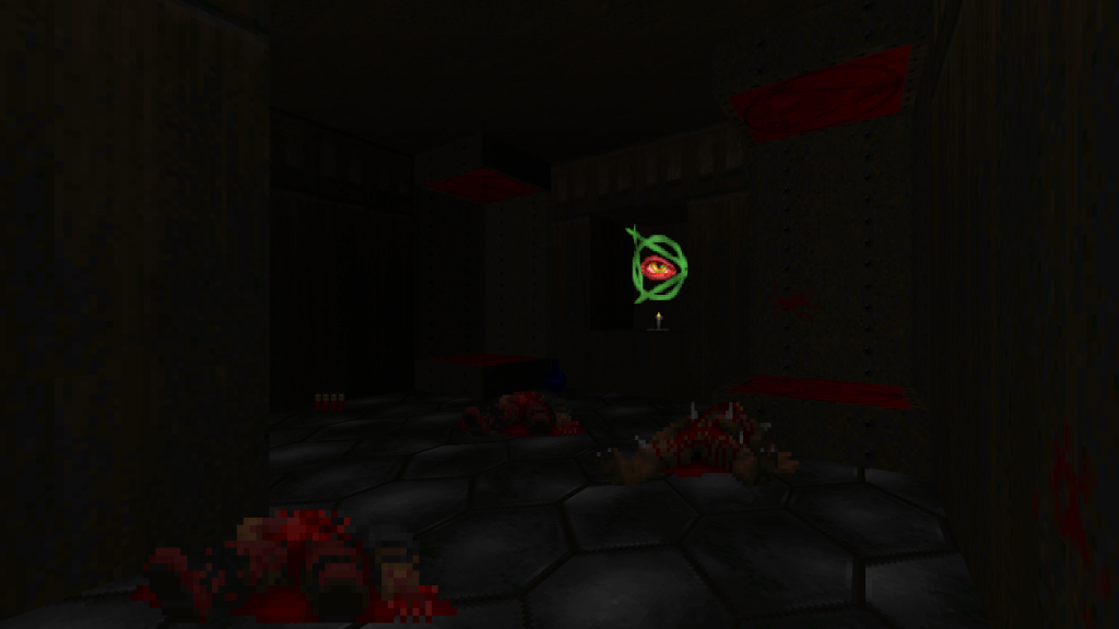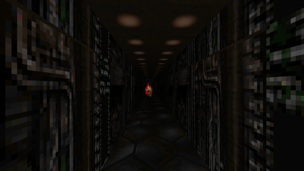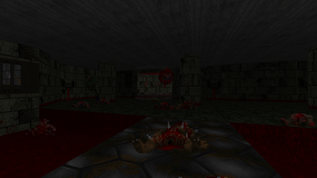 I started without any ideas or plans. I began creating rooms and hallways, and decided to see where it took me. The result was a classically-inspired Doom level without the need for jumping and free-look, something modern source ports provide. The goal was just simple designs with some tricks and traps. I also really enjoyed the idea of a more-restricted set of textures and enemies compared to Doom II. The last guiding principles were taken from John Romero when talking about the design of E1M1.
