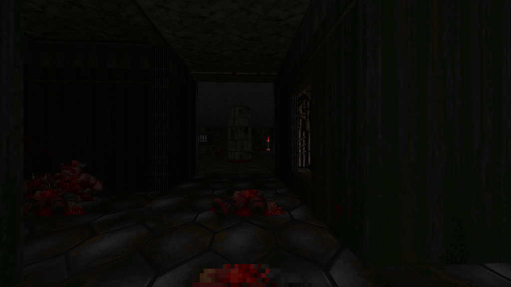 The inside of this structure sure is dark. I forgot to mention that I wanted to attempt an atmospheric setting with the use of subtle light changes. I probably still need to increase the overall sector light level, though.